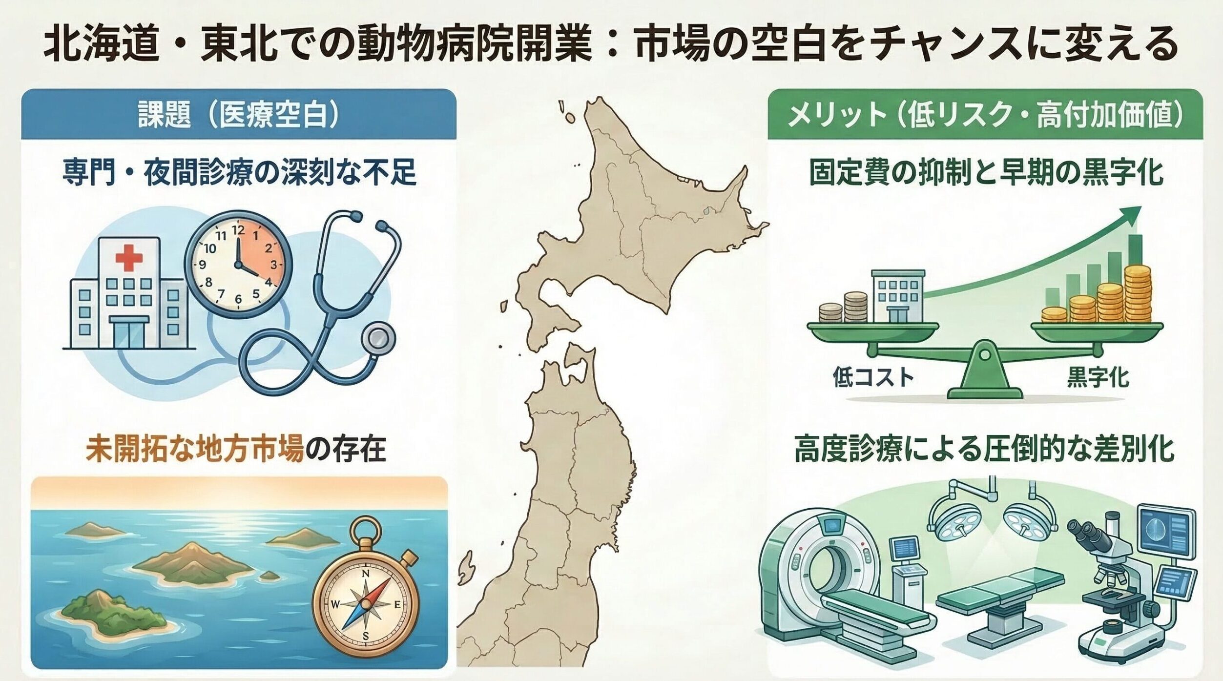 この記事では、北海道・東北地方で動物病院開業を検討している先生に向けて、